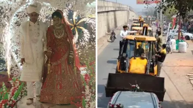 दुल्हन की विदाई कार,बस,बैलगाड़ी व हेलीकॉप्टर से नहीं बल्कि हुयी बुलडोजर से और बनी एक अनोखी शादी