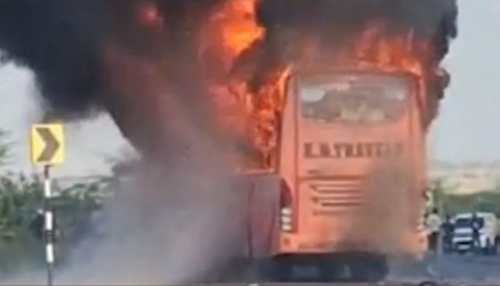 - आग इतनी भीषण थी कि बस पूरी तरह जलकर खाक हो गई।